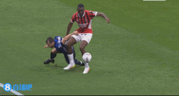 第41分钟,福法纳拼抢中踩到了姆希塔良的手臂↓